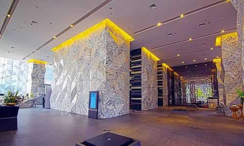 經(jīng)過公司多次考察,于近日在成都天府新區(qū)軟件園旁邊購置新的研發(fā)基地,至此朗速研發(fā)公司正式落成,在不久的將來,公司研發(fā)中心將成功搬遷至新的辦公樓。 香年廣場商務寫字樓完全按照國家超甲級寫字樓的配套標準進行建設(shè),首先從樓宇的外立面來講,其立面運用全干掛工藝,鋪裝淺米色石材幕墻,配以簡約且硬朗的方形窗,屋頂采用平屋頂設(shè)計,造型現(xiàn)代。凸顯建筑端莊的商務氣息和高雅的品格,匹配甲級商務體的立面形象,拔升企業(yè)高端商務形象。 從外立面已經(jīng)可以看出本項目具備的高端商務感特質(zhì),待進入寫字樓,首先映入眼簾的12米挑高南北雙大堂,共享面積達到1000平米,不僅為入駐企業(yè)提供寬敞大氣的辦公環(huán)境,與進駐企業(yè)的高端品質(zhì)相匹配,更彰顯甲級寫字樓非凡氣度。另外雙大堂設(shè)計除了能有效分流上下班高峰時段進出大廈人流所造成的壓力,同時也能將兩棟高層寫字樓與中心綠化廣場巧妙地聯(lián)系起來,便于廣場休閑的互動性和兩棟樓進駐企業(yè)之間的業(yè)務往來的便捷性,提升辦公效率及開創(chuàng)全新的商務辦公空間模式。